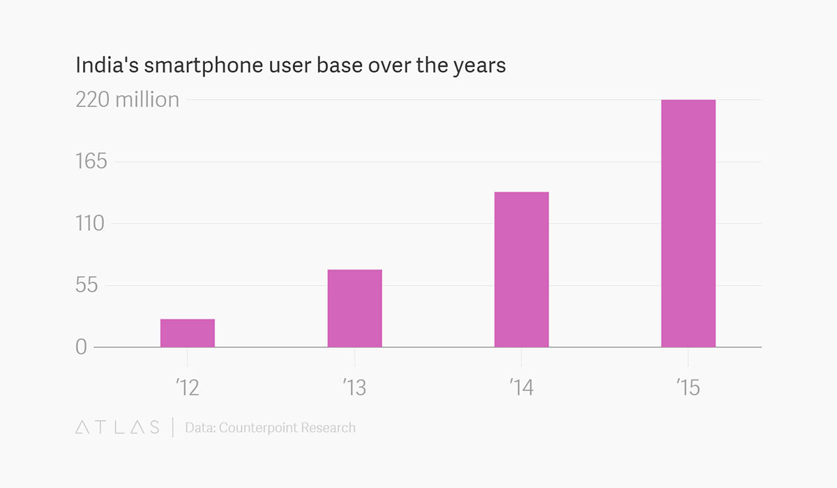 India’s smartphone user base over the years
