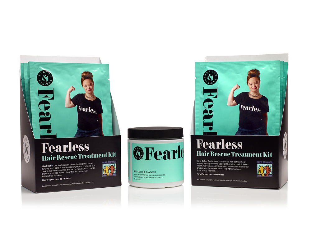 “Katie has battled heart surgery, competed in the Special Olympics, and shines as a Best Buddies International spokeswoman. She’s also a daughter, a sister and a friend who has broken down barriers, busted stereotypes and stigmas and won over countless hearts, including ours. She is our sole inspiration for Beauty & Pin-Ups’ newest product, Fearless Hair Rescue Masque.”